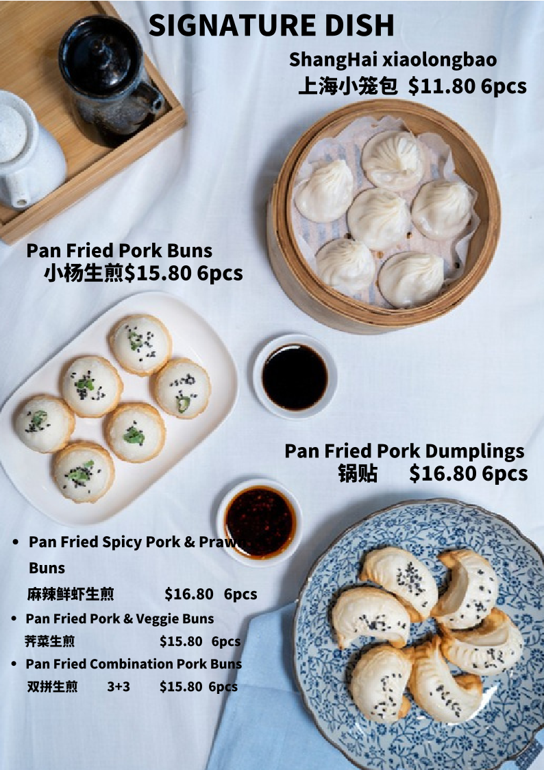 The menu features a mix of warm, hand-crafted dumplings, buns, and noodle dishes that cater to various tastes throughout the day. For instance, the pan-fried pork buns and Shanghai Xiaolongbao offer rich, savory bites ideal for sharing, while options like the Chongqing Hot and Spicy Noodle Soup provide a heartier, warming experience during cooler moments. Lighter sides such as the crispy spring onion pancake or steamed chicken with chili peanut sauce complement the offerings, adding variety and texture.